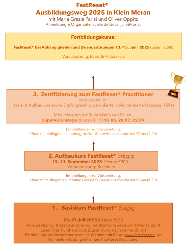 Die FastReset®-Ausbildung in Österreich findet in Pressbaum bei Wien statt (Haus Klein-Meran) . Anbei die aktuellen Termine.